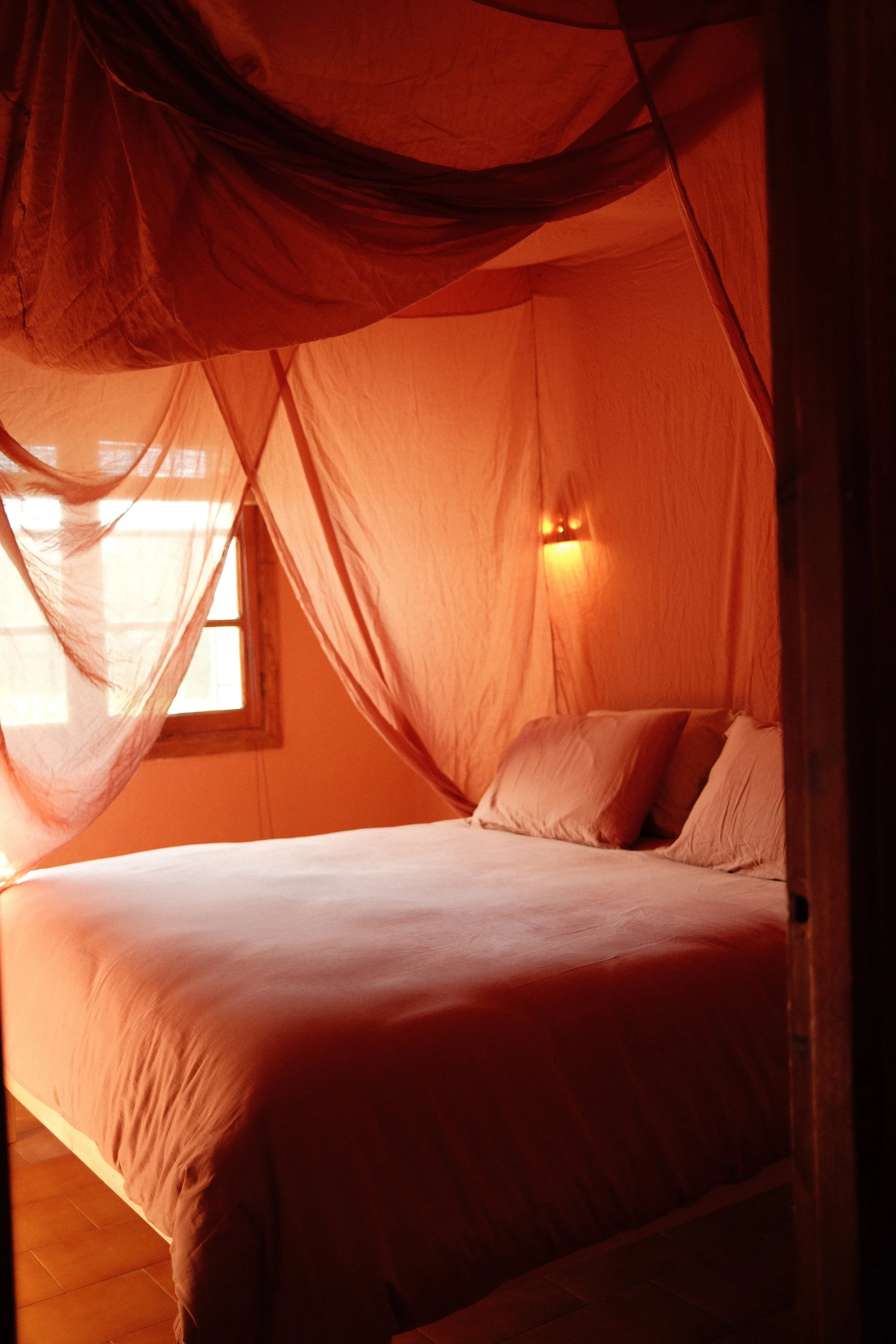 The Billie Room: Kingsize bed (180×200 cm) met een romantisch bedhemel van El Pelut en airconditioning.